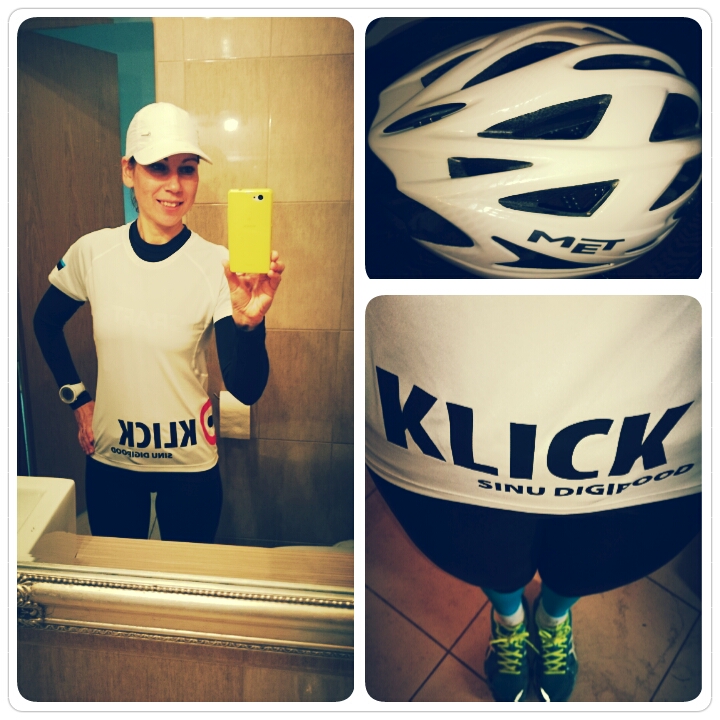 Siis helistas Kristi ja uuris mis olukord on ja mis selga pannakse. Võrus pidi vihma sadama nagu oavarrest. ütlesin siis, et kõik on kontrolli alla, vihma ei ole, päike tuleb kohe välja 🙂 Aga õnneks, õ n n e k s mainis Kristi, et lisaks kiivrile oleks hea kui võtaks ka rattakindad kaasa. No ise ma ei oleks kuidagi selle peale tulnud! Paraku leidsin kiiruga ainult erivärvilised kindad, no pole hullu, kes see ikka vaatab 😛