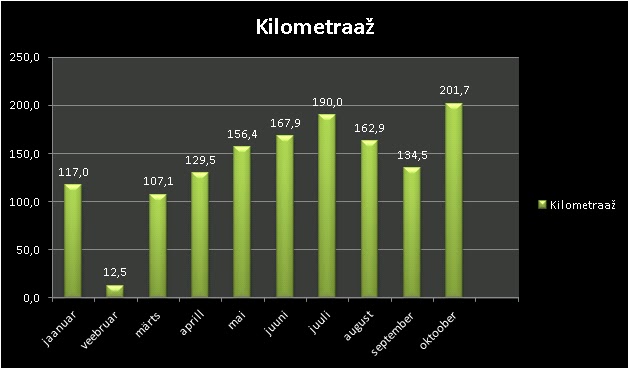 Ja minu treeningtabel kilometraažides näeb välja selline: