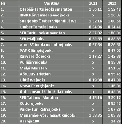 Aasta tiksub hoopis teistmoodi kui arvestus käib mitte tavakalendri järgi vaid jooksuvõistluste kalendri järgi :D- Märtsis 1 võistlus, Aprillis 1 võistlus, Mais 5 võistlust jne. ja juba on märkamatult aasta täis saanud. Uskumatu!
